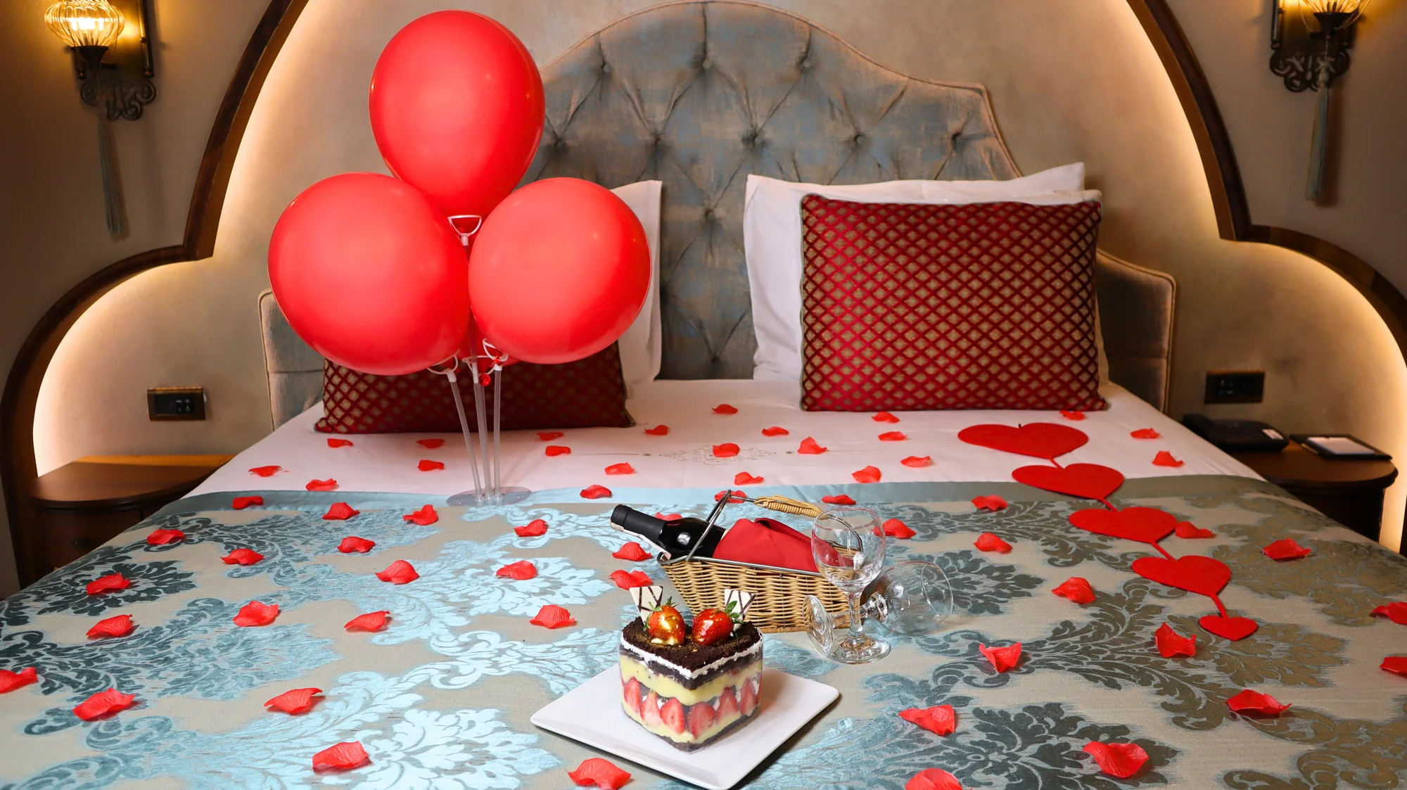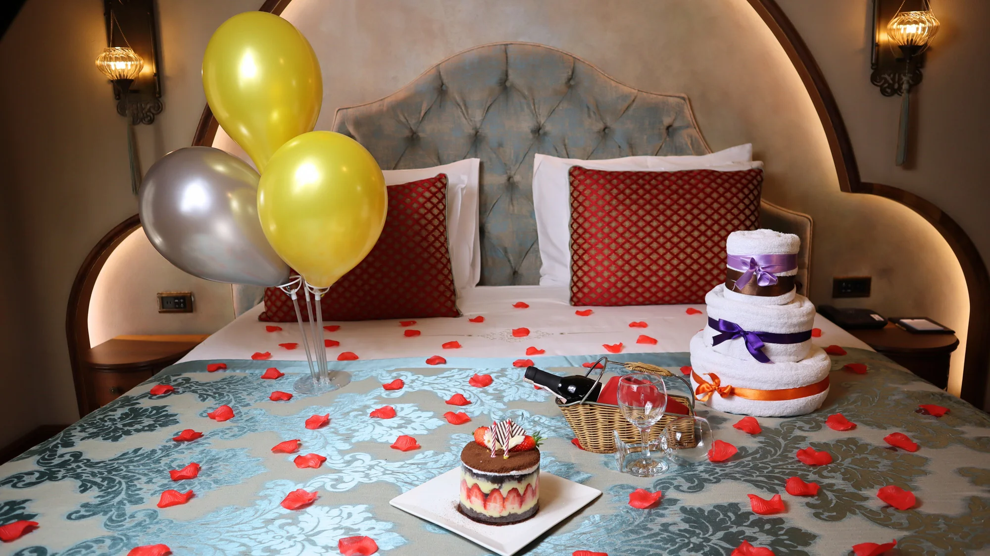Sevdiğiniz ile birlikte İstanbul’un mistik atmosferini odanızda yaşatacak unutulmaz bir deneyim. Paket içeriği: Romantik yatak süslemesi Gül yaprakları Çikolata fondü, (taze...