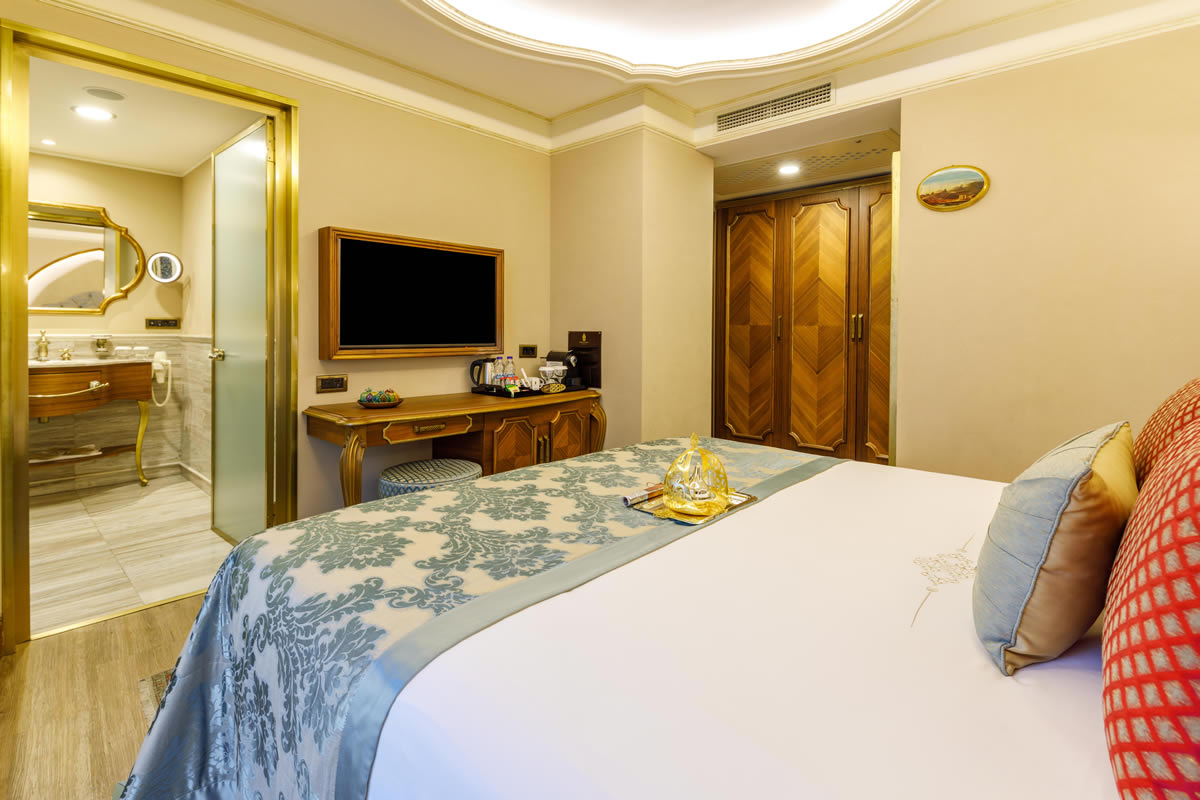 Titizlikle dizayn edilmiş City Room, duvarlarında yer alan tılsımlı gömlekler ve nostaljik ama şık dekorasyonlarıyla misafirlerine rüya gibi bir deneyim sunuyor. Çift kişilik yatakla veya iki adet tek kişilik yatakla hazırlanabilen bu odalar, size kendinizi Osmanlı İmparatorluğu’nun zarif saraylarının birinde misafir gibi hissettirmek için tasarlandı.